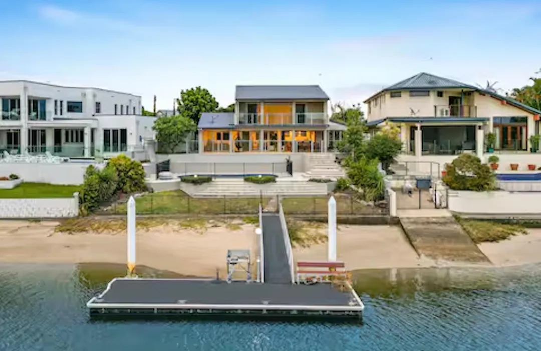 寝室2室のゴールドコースト Sorrento Waterfront Retreat & Poolヴィラはゴールドコースト地方植物園から3.4キロメートル離れた所の場所に位置し、プライベートなプールを提供しており、リラックスした滞在を楽しむことができます。